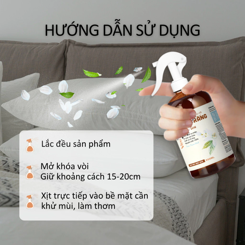 Xịt làm thơm: Giữ chai cách bề mặt vải khoảng 15-20cm và nhấn xịt đều.