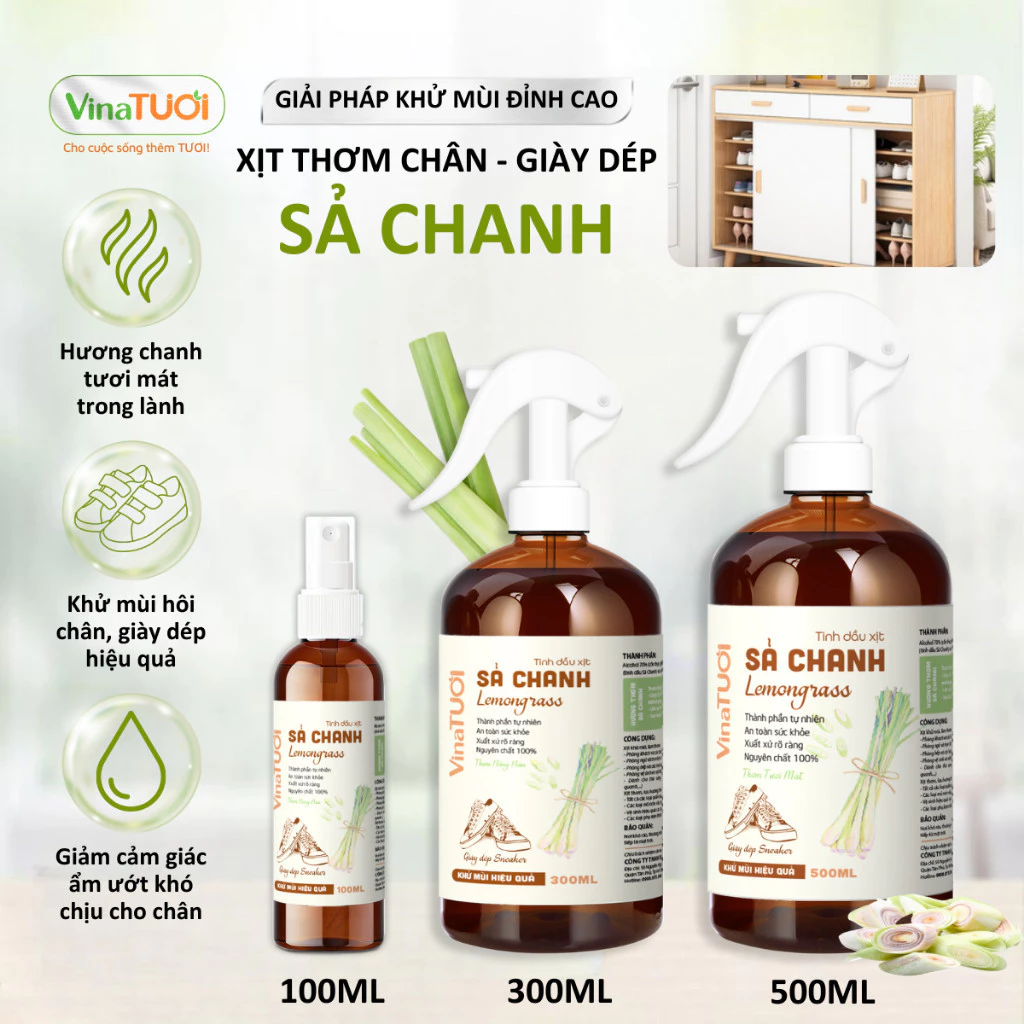 Bạn đang tìm kiếm một giải pháp hiệu quả để loại bỏ mùi hôi chân và giày dép sau một ngày dài vận động? Xịt khử mùi Vina Tươi 300ml hương Sả Chanh là sản phẩm chuyên dụng với thành phần tinh dầu thiên nhiên nguyên chất, giúp đôi chân bạn luôn khô thoáng, thơm mát và sạch khuẩn một cách an toàn nhất.