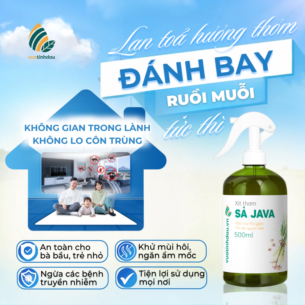 An toàn cho trẻ sơ sinh & mẹ bầu: Chiết xuất 100% tinh dầu thiên nhiên, không chứa DEET, không cồn công nghiệp. Tuyệt đối lành tính khi xịt trong phòng ngủ hoặc khu vực bé vui chơi.