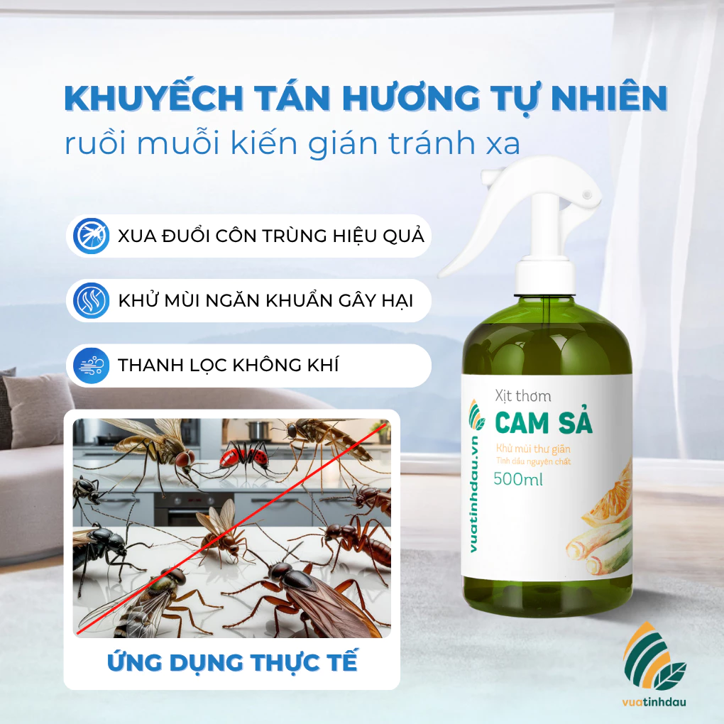 Công nghệ xịt phun sương mịn: Đầu xịt cao cấp giúp các hạt tinh dầu tỏa đều trong không khí, thấm nhanh vào rèm cửa, vải vóc để duy trì hiệu quả đuổi muỗi lâu dài.