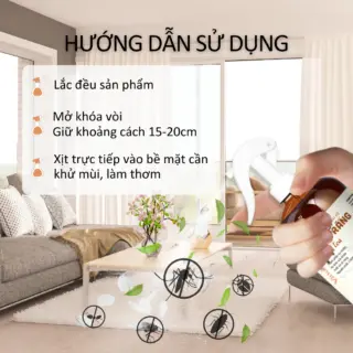 Tận hưởng: Xịt trực tiếp vào không khí hoặc lên các bề mặt cần khử mùi, làm thơm.