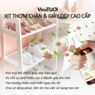 Bạn lo lắng về mùi hôi chân và giày sau một ngày dài làm việc hay tập luyện? Xịt khử mùi hôi chân và giày Vina Tươi 300ml hương Rừng Thông chính là giải pháp đỉnh cao từ thiên nhiên. Với chiết xuất tinh dầu nguyên chất, sản phẩm không chỉ loại bỏ mùi hôi tức thì mà còn mang đến cảm giác sảng khoái, tự do như đang đứng giữa rừng thông bạt ngàn.