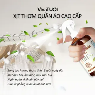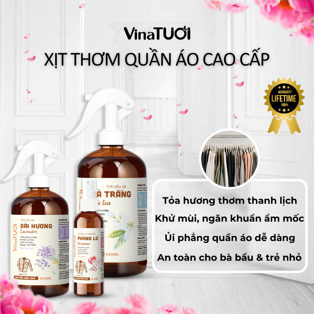 Xịt Thơm Quần Áo VINA TƯƠI 300ml Khử Mùi Lưu Hương An Toàn Mẹ Bầu, Bé Mùi Trà Trắng